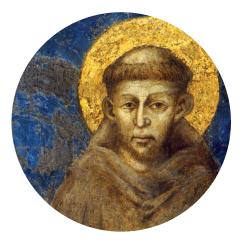 Francesco nacque ad Assisi nel 1182. Dopo una giovinezza spensierata, all'età di 24 anni, nella Chiesetta di San Damiano, sentì l'invito di Cristo che lo chiamava a seguirlo. Diede inizio a diversi Ordini religiosi tra i quali "Ordine dei Frati Minori", "Povere Dame" o delle Clarisse, e un Terz' Ordine per coloro che vivono nel mondo. Due anni prima della morte, sul monte della Verna ricevette da Cristo il sommo privilegio delle Stimmate, che lo resero conforme al Crocifisso anche nel corpo. Morì a S. Maria degli Angeli il 3 ottobre 1226.